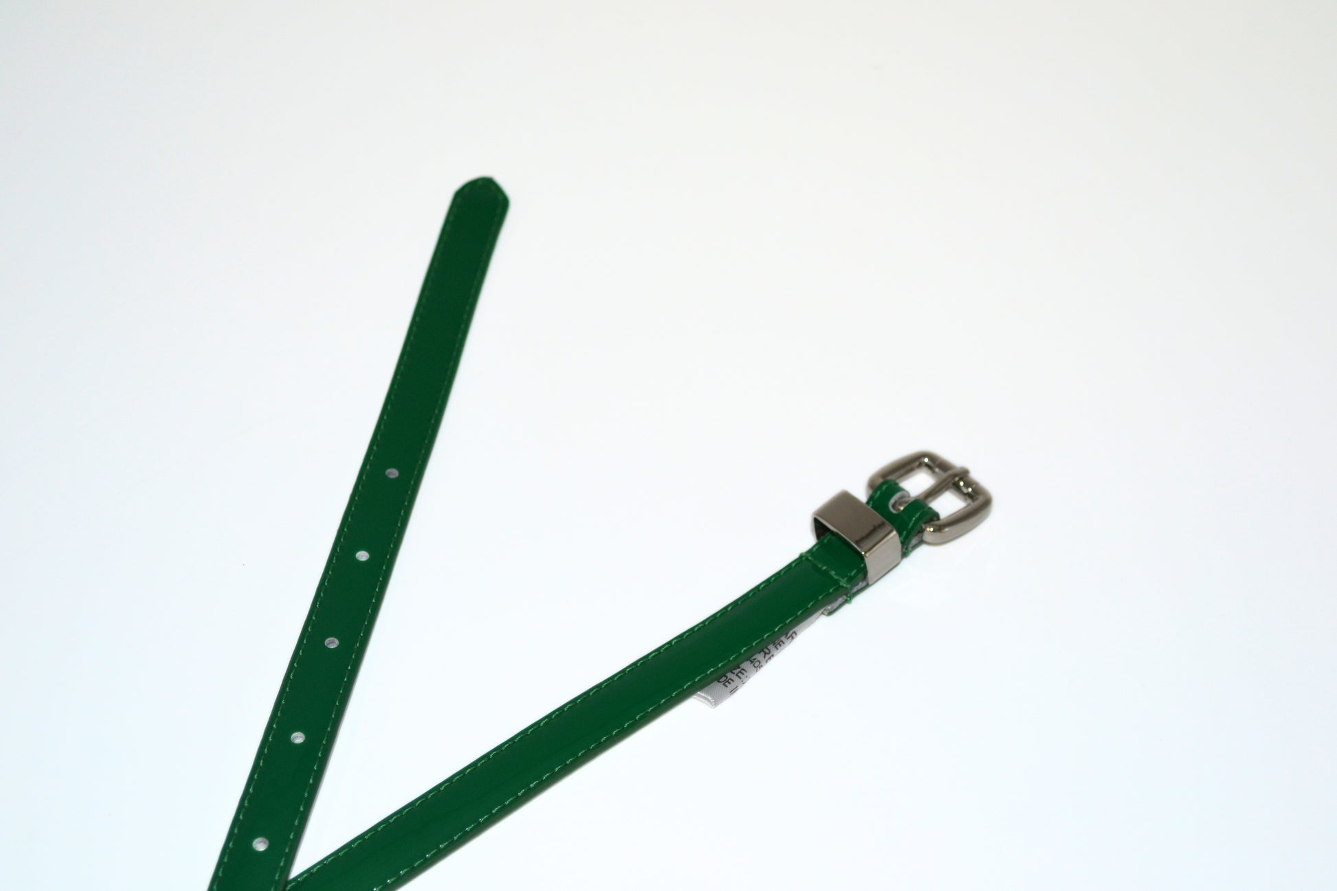 Bright, bold and colourful best describe the 'Carrie' range of genuine leather belts with a high gloss Forrest Green patent finish.