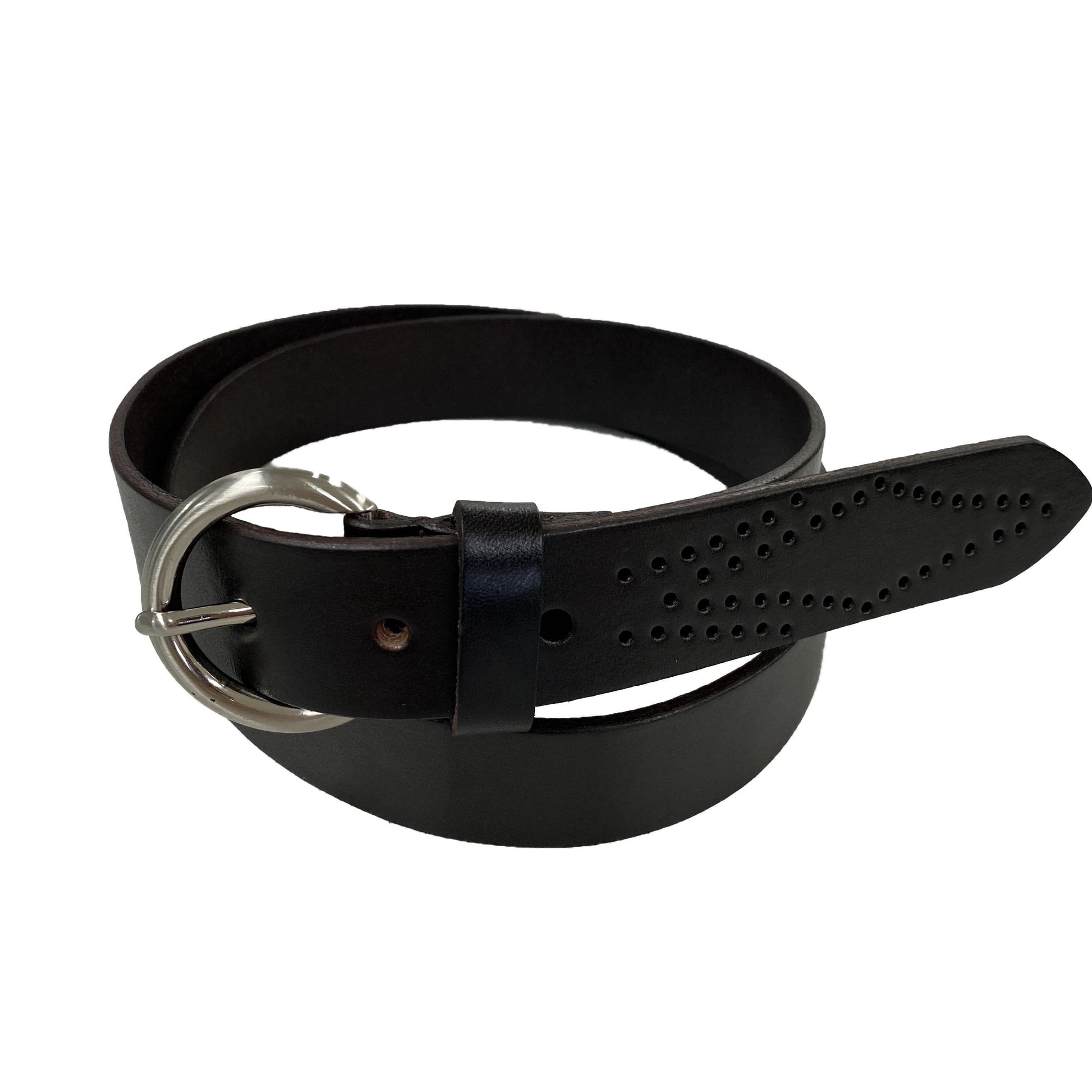 ESPERANCE - Women's Dark Brown Genuine Leather Belt with Round Silver Buckle