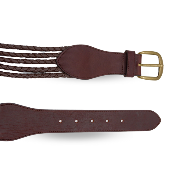 Gorgeous genuine leather belt with 5 rows of plait detail in dark brown, featuring an antique brass look buckle. Great for jeans or can be worn as a waist belt with a t-shirt or dress. Belt is 40mm wide with a teardrop on either end (60mm width)