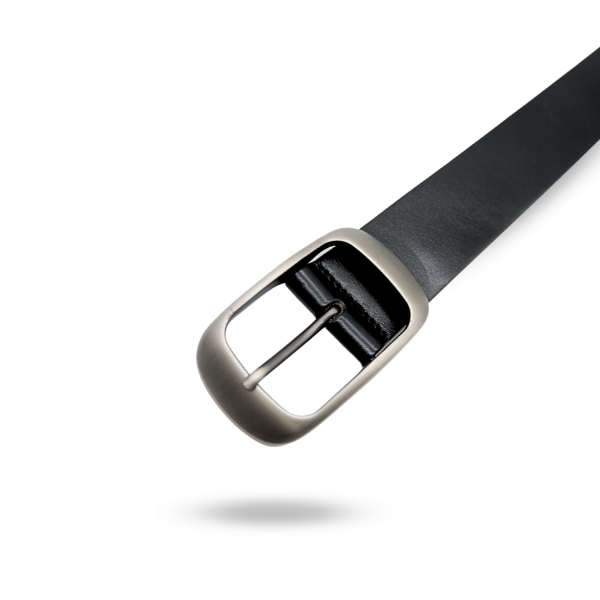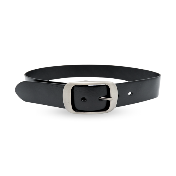 ROBIN FALLS - Women's Black Genuine Leather Belt with Oval Silver Buckle